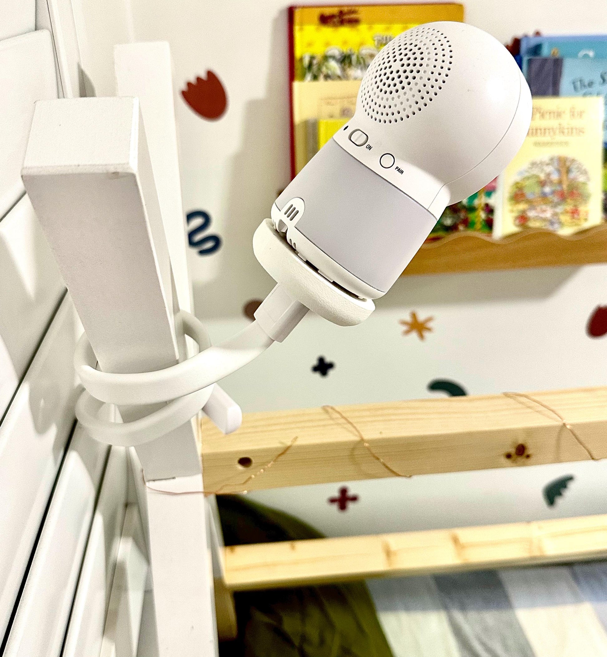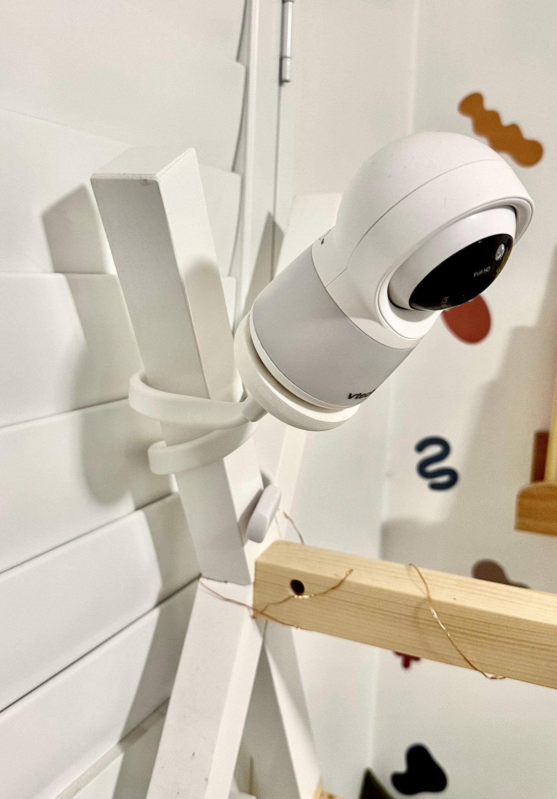 Twist it around a crib rail, shelf, or chair leg, then tighten the universal 1/4” thread to hold your baby monitor or camera steady. Bend, flex, and position however you like — no tools, no screws, no drama.