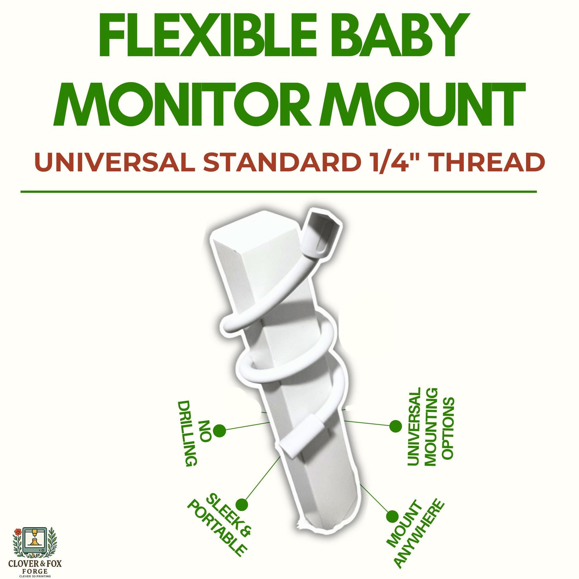 Flexible Gooseneck Baby Monitor Mount | Universal 1/4” Thread | Adjustable Flexi Arm | Clover & Fox Forge
